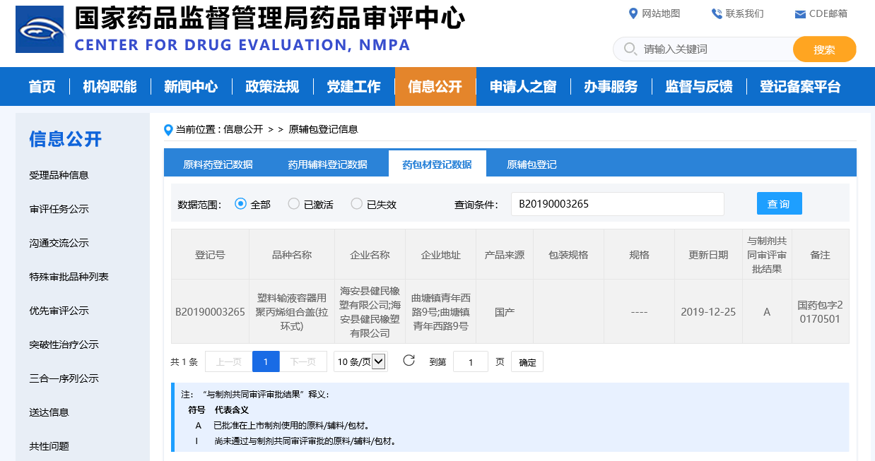 塑料輸液容器用聚丙烯組合蓋(拉環式) 信息公示